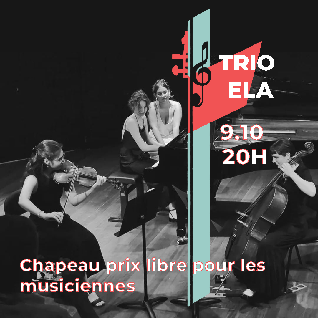 Crée en 2025 à Genève, le Trio Ela réunit Alessandra Fusco(piano), Elissa Bertorelli (violoncelle) et Lucrezia Flores Montes (violon), étudiantes en cursus préprofessionnel au Conservatoire populaire. Portées par une belle amitié, elles partagent avec plaisir leur passion pour la musique de chambre.